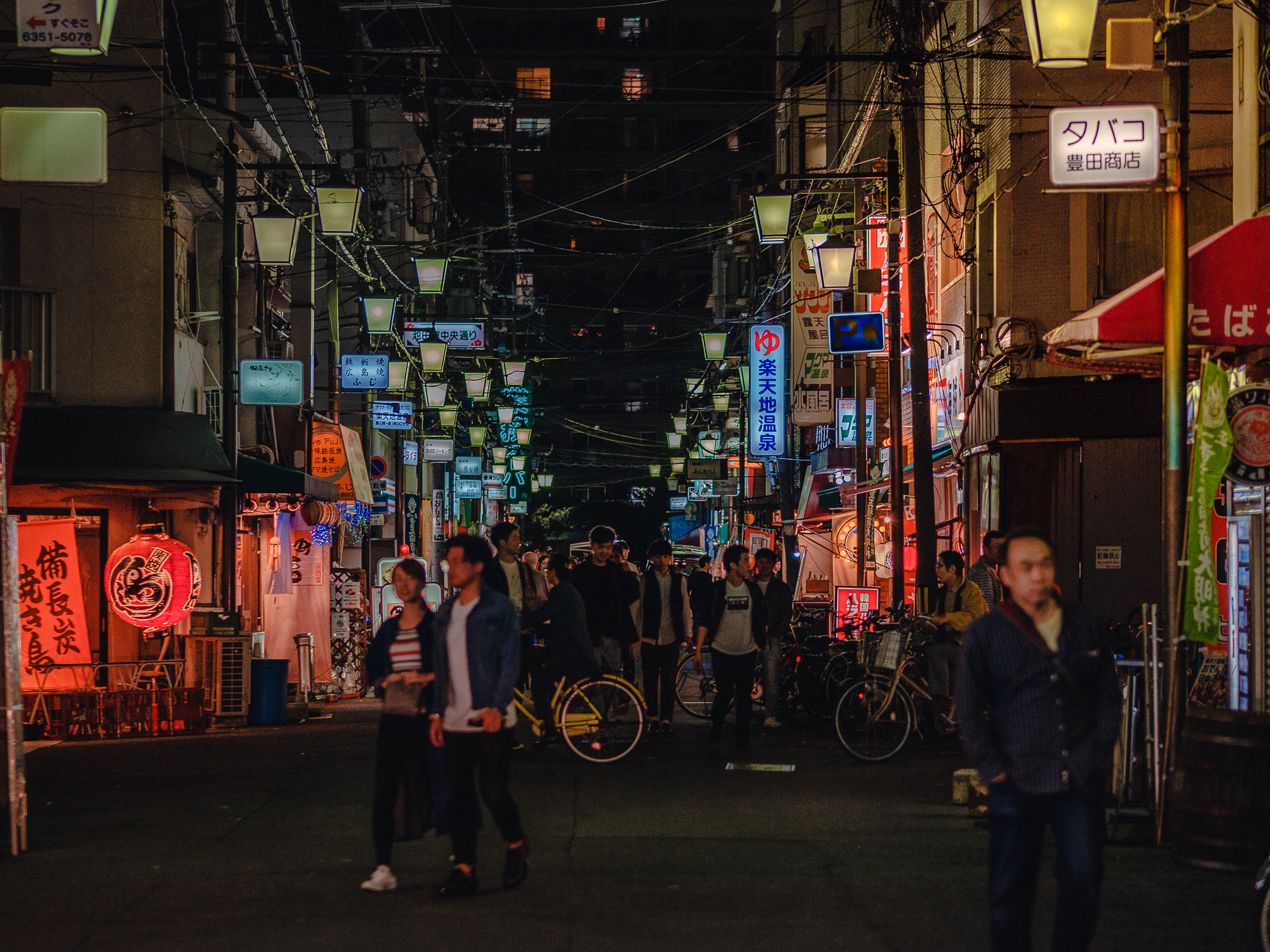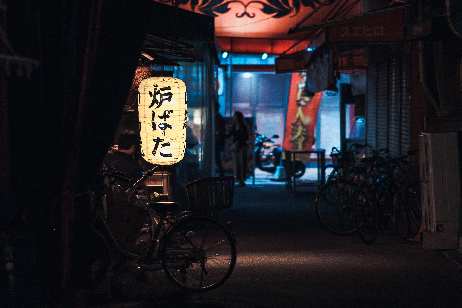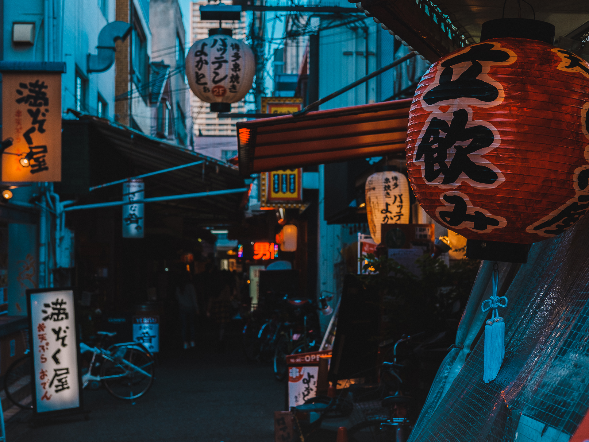 밤이되니 하나씩 불이 들어오는 텐마 메인 스트리트의 뒷골목.