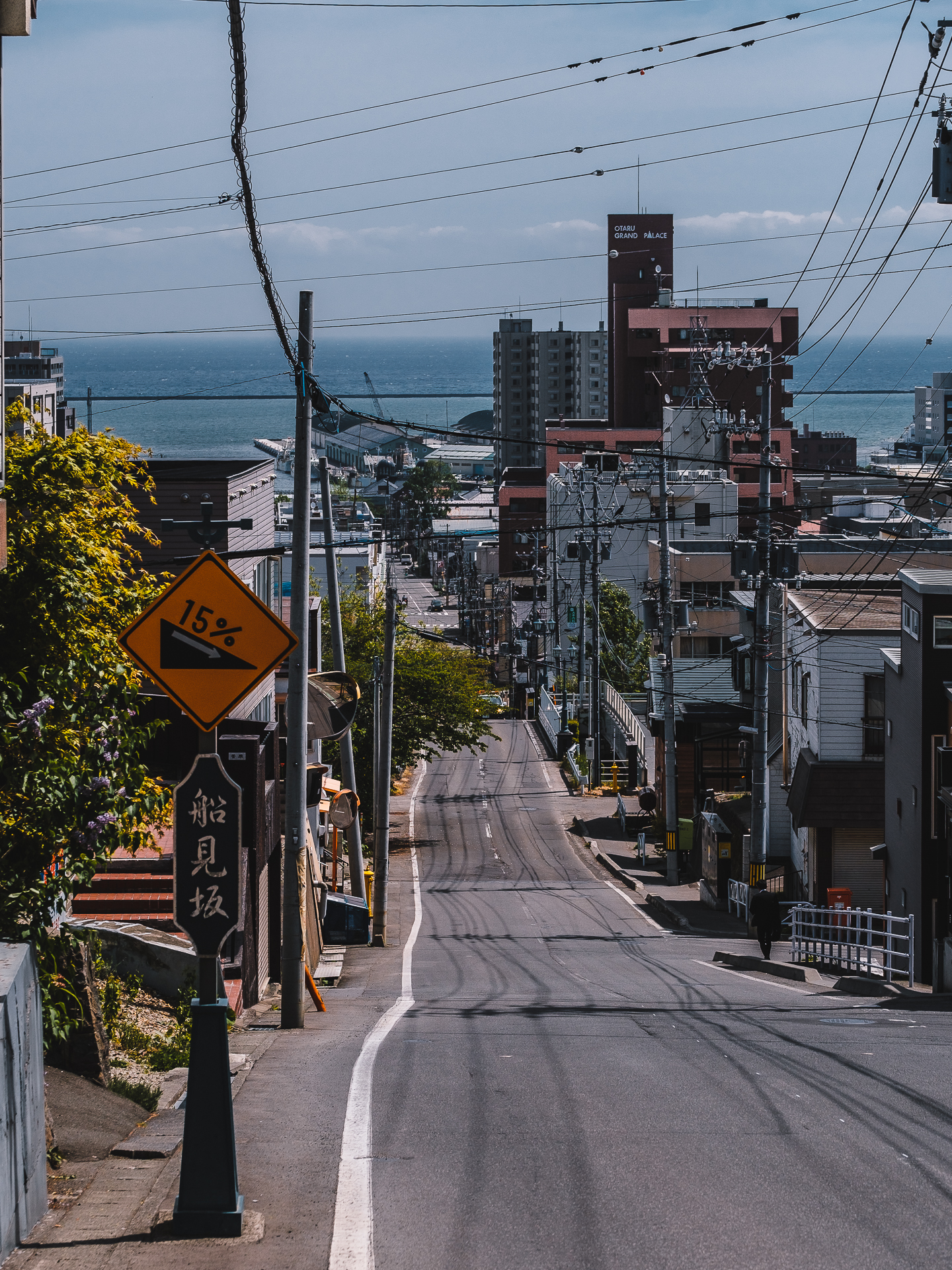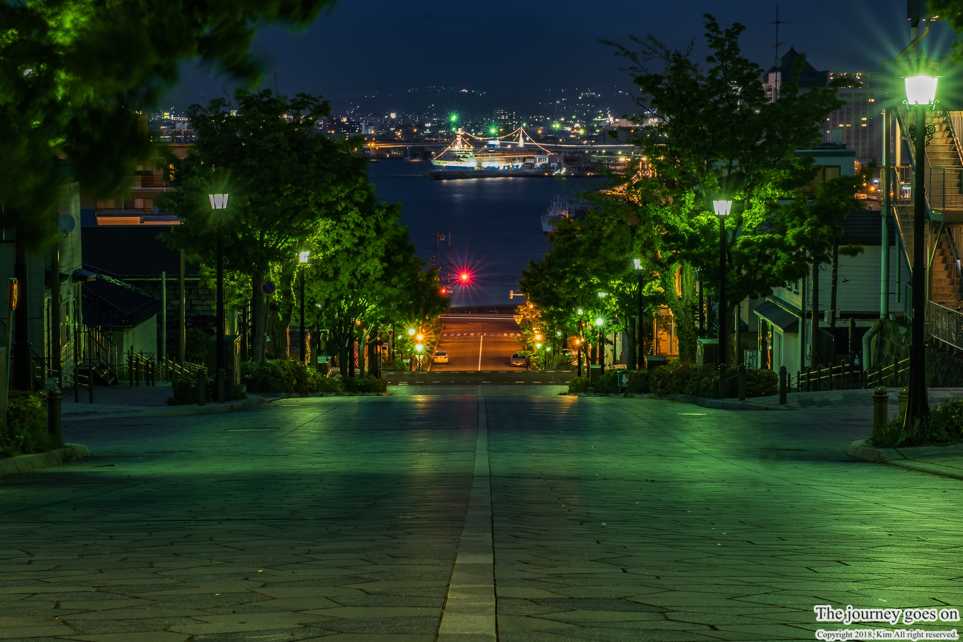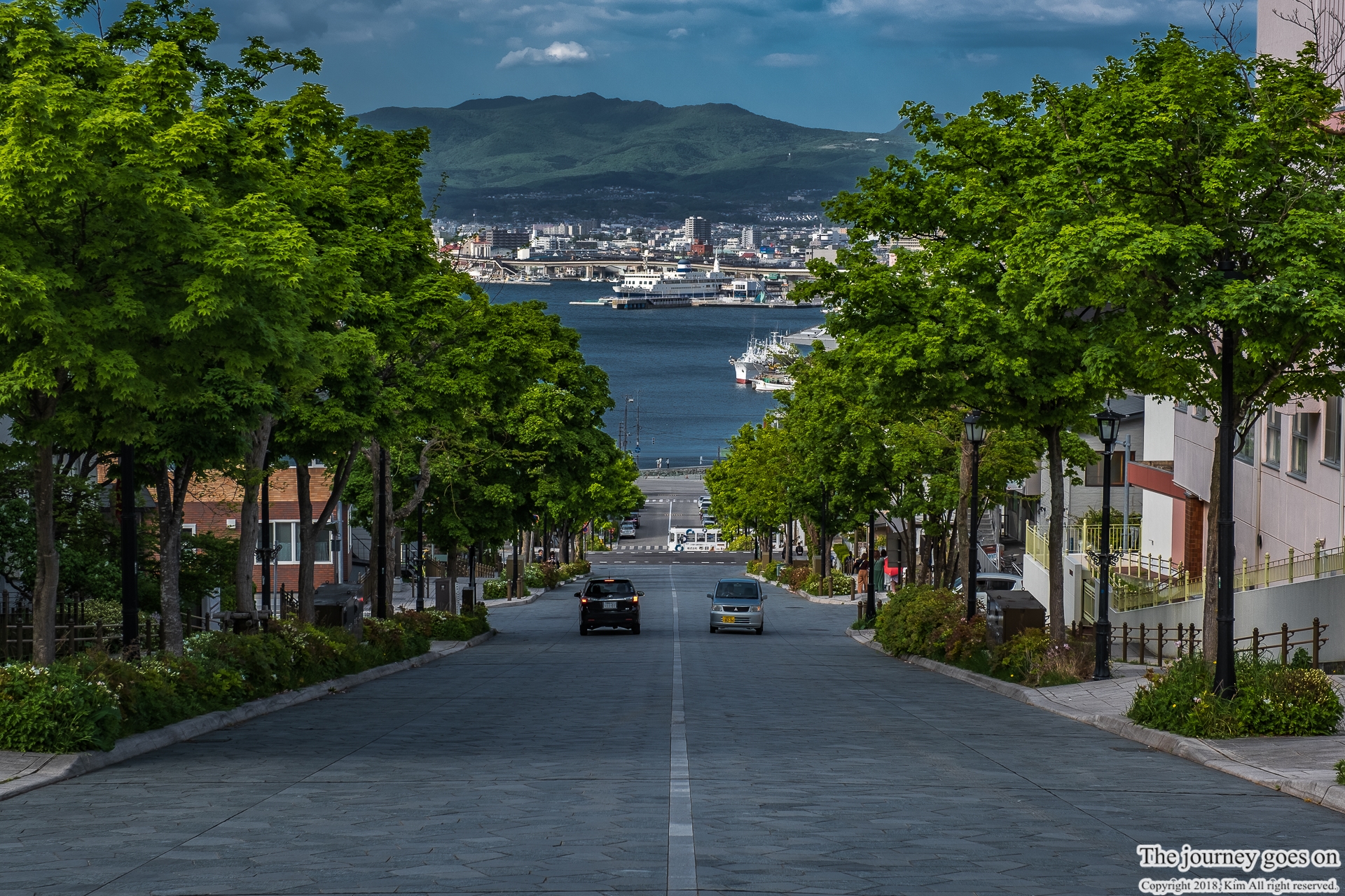 후나미자카라고 하는 비탈길은 언덕에 올랐을때 오타루항에 정박해있는 페리나 크루즈가 보인다고 해서