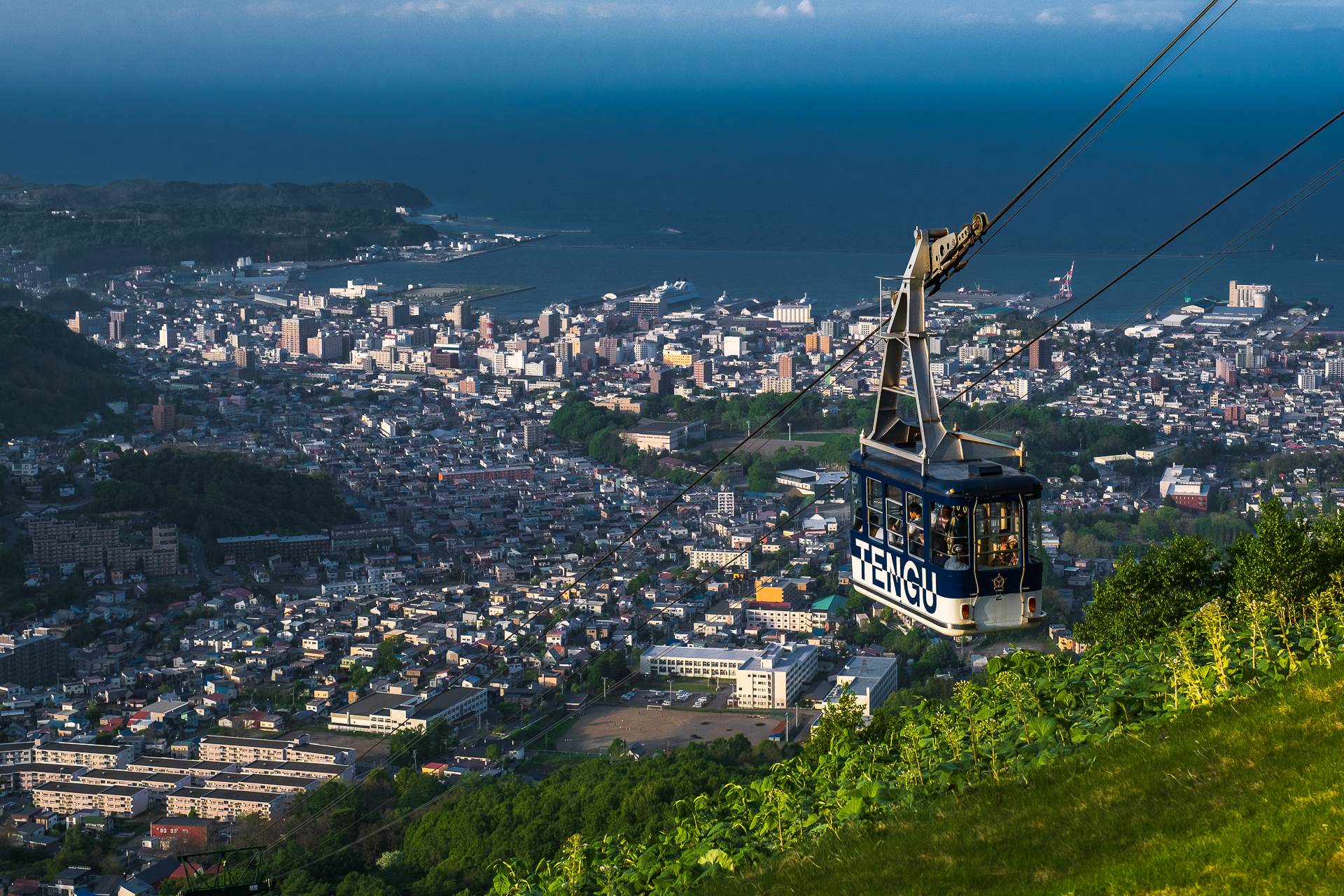 텐구산 로프웨이를 타고 산으로 올라갔다. 겨울에는 스키장으로 이용되는 이곳은 이시카리만에 접해있는